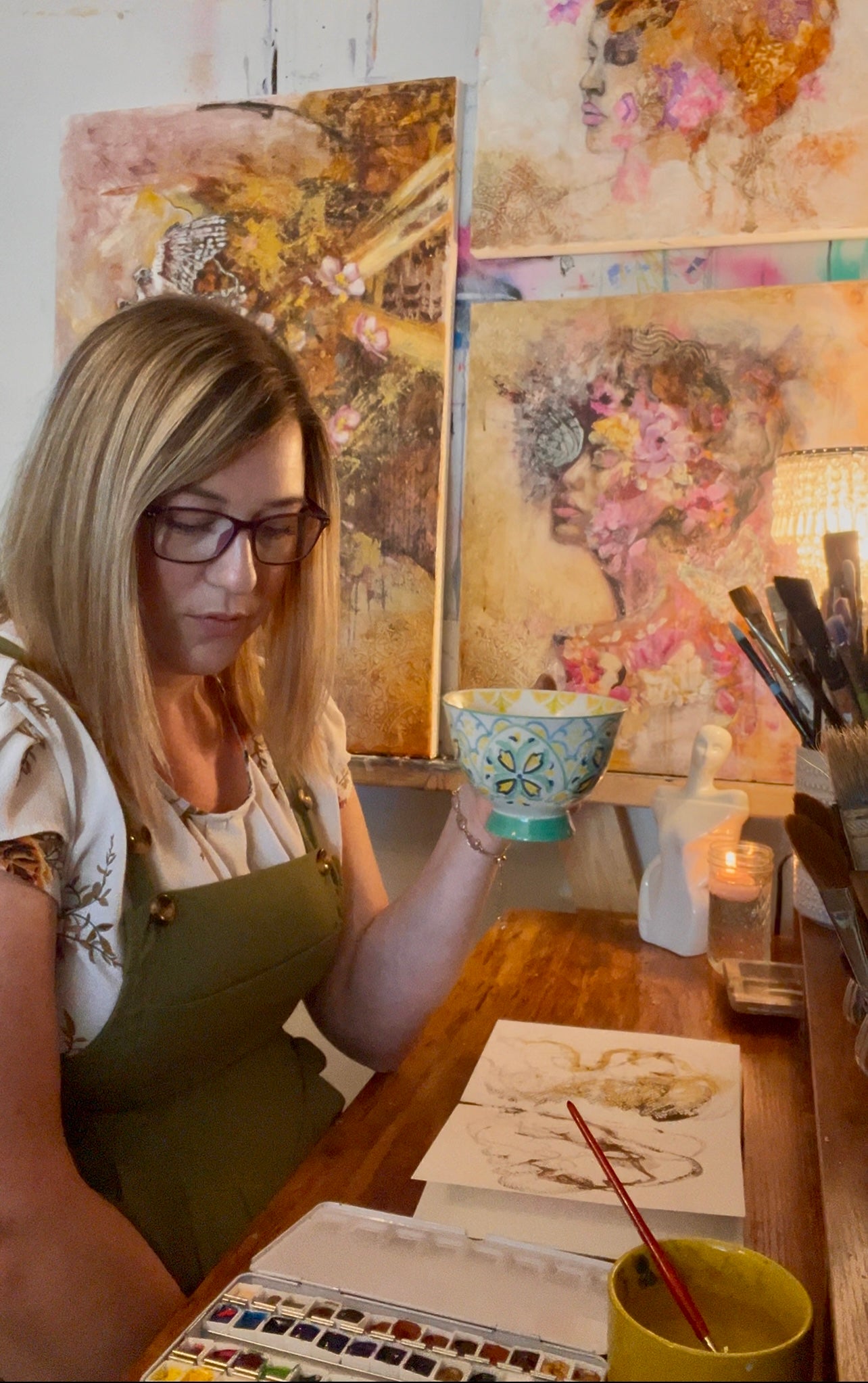 I'm an artist, mom, wife, and woman learning to embrace the beauty within the layers of life. With a background in psychology and a personal journey through silence, I've come to believe our voice is our greatest strength. Through my art and writing, I hope to help women see their own resilience, confidence, and truth reflected back at them.